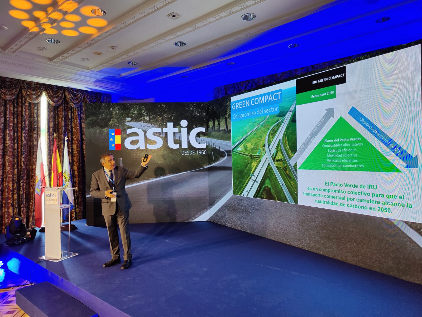ASTIC también está abanderando en España la difusión del ‘Green Compact’, promovido por la Organización Internacional de Transporte por Carretera (IRU), de la que es miembro activo desde 1960. Este ‘Pacto Verde’ es una hoja de ruta con medidas para que el transporte terrestre mundial consiga la neutralidad de emisiones en 2050, ahorrando, al menos, 3.000 millones de t. de emisiones de CO2 al año.